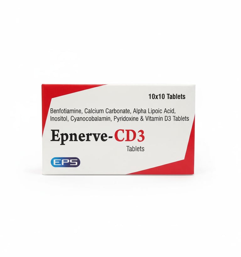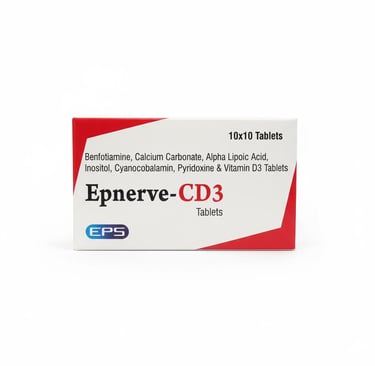 Benfotiamine 150 mg, Calcium Carbonate 500 mg, Alpha Lipoic Acid 200 mg, Inositol 100 mg, Cyanocobalamin 1500 mcg, Pyridoxine 3 mg, Vitamin D3 1000 IU Tablets
